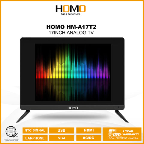 Ultra-Compact Entertainment SolutionEntertainment in the smallest package! The HOMO 17" Analog LED TV is ultra-compact yet feature-packed with built-in games, AC/DC power, and VGA connectivity.✨ Key Features: Ultra-Compact 17" Size:...