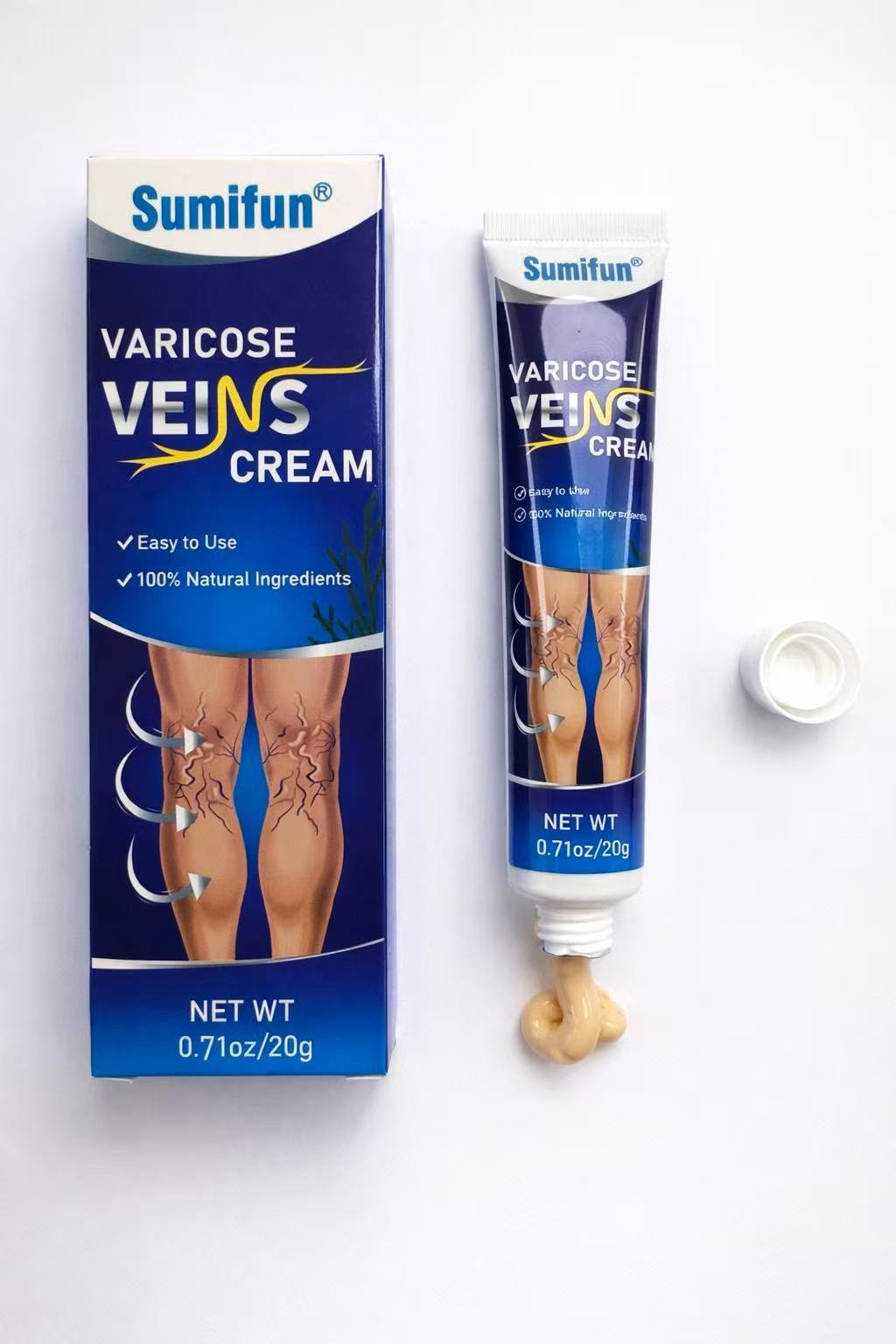 Sumifun Varicose Vein Cream – Soothing & Refreshing Leg Care, Lightweight Herbal Formula, 20g (Beige/Yellowish Herbal Cream)